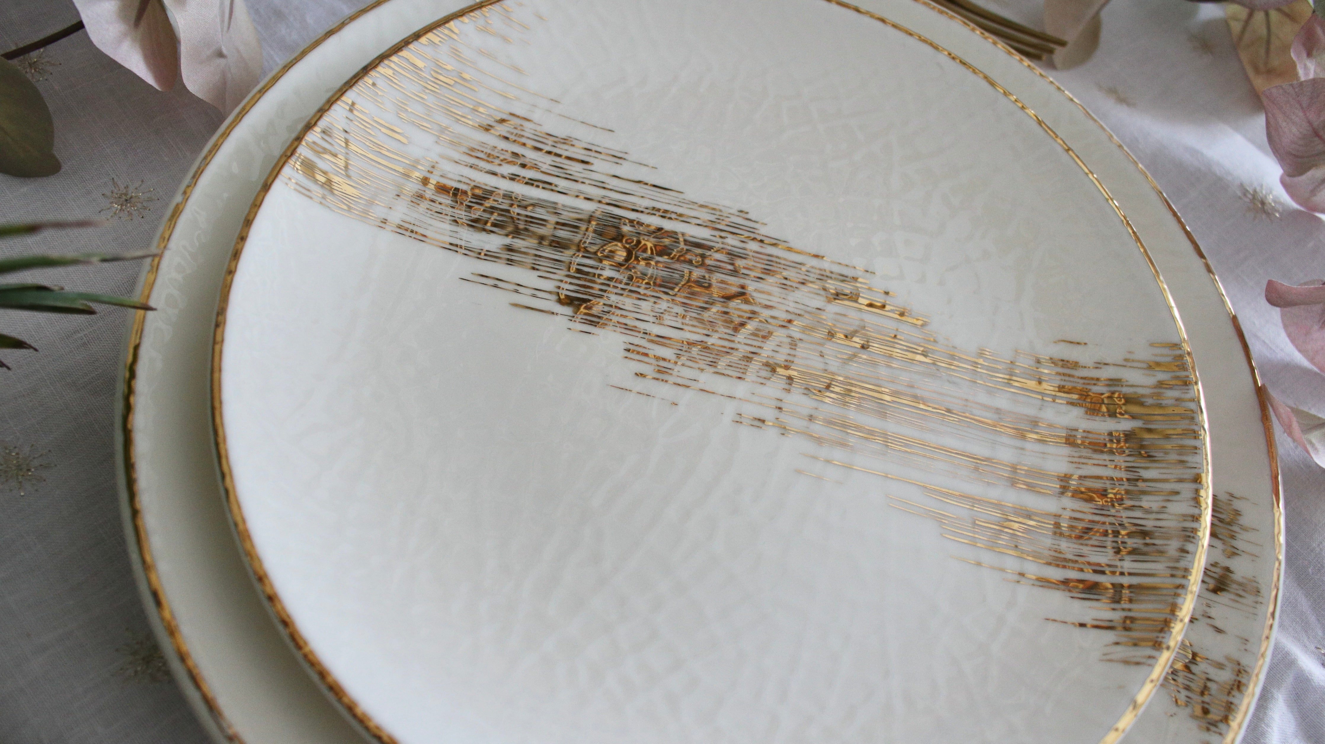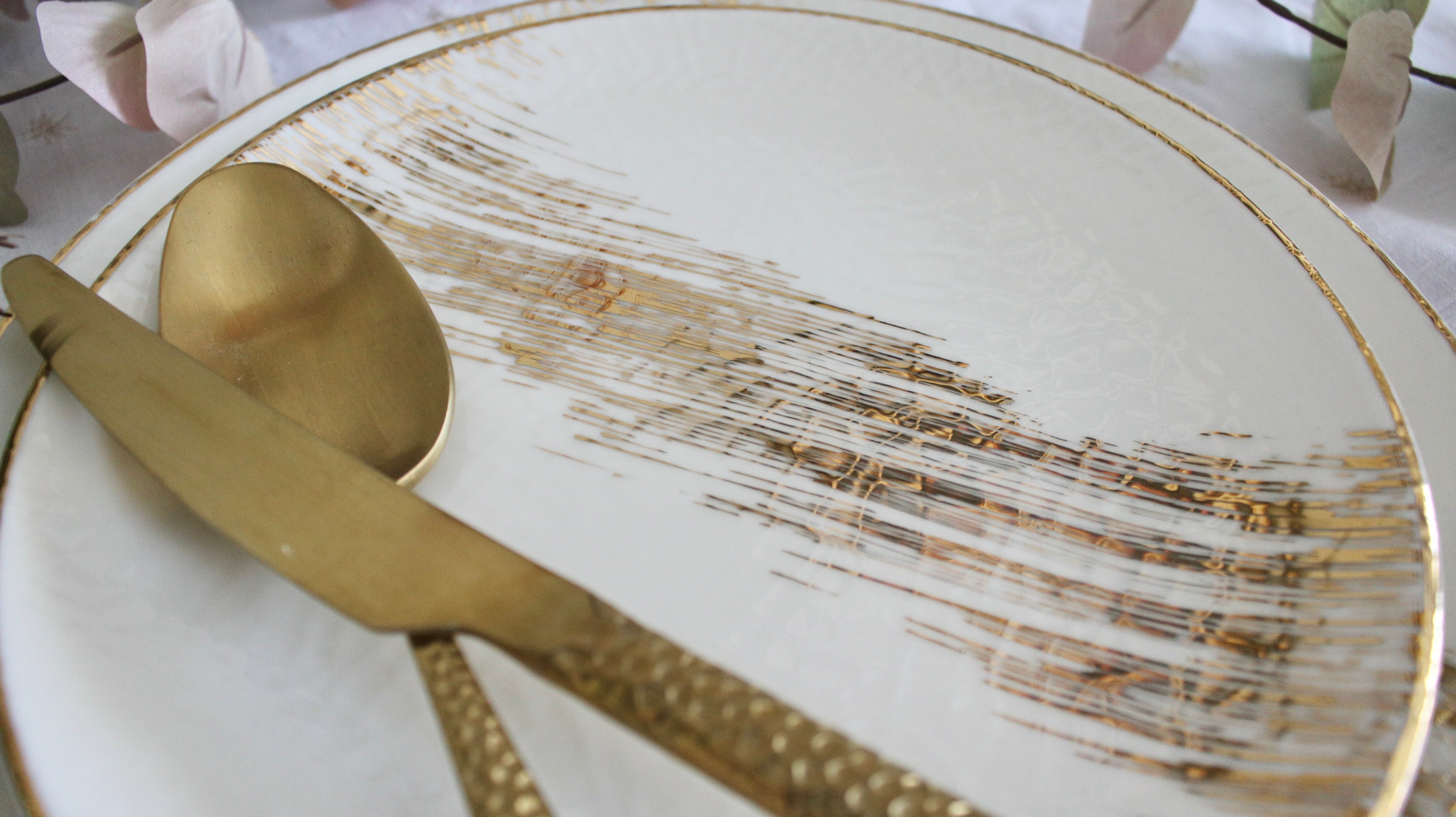 A warrior in her own right, the Athena set's crackled effect adds an extra oomph. This is pure gold hand painted on porcelain. Since this is hand painted porcleain, no two pieces are identical.