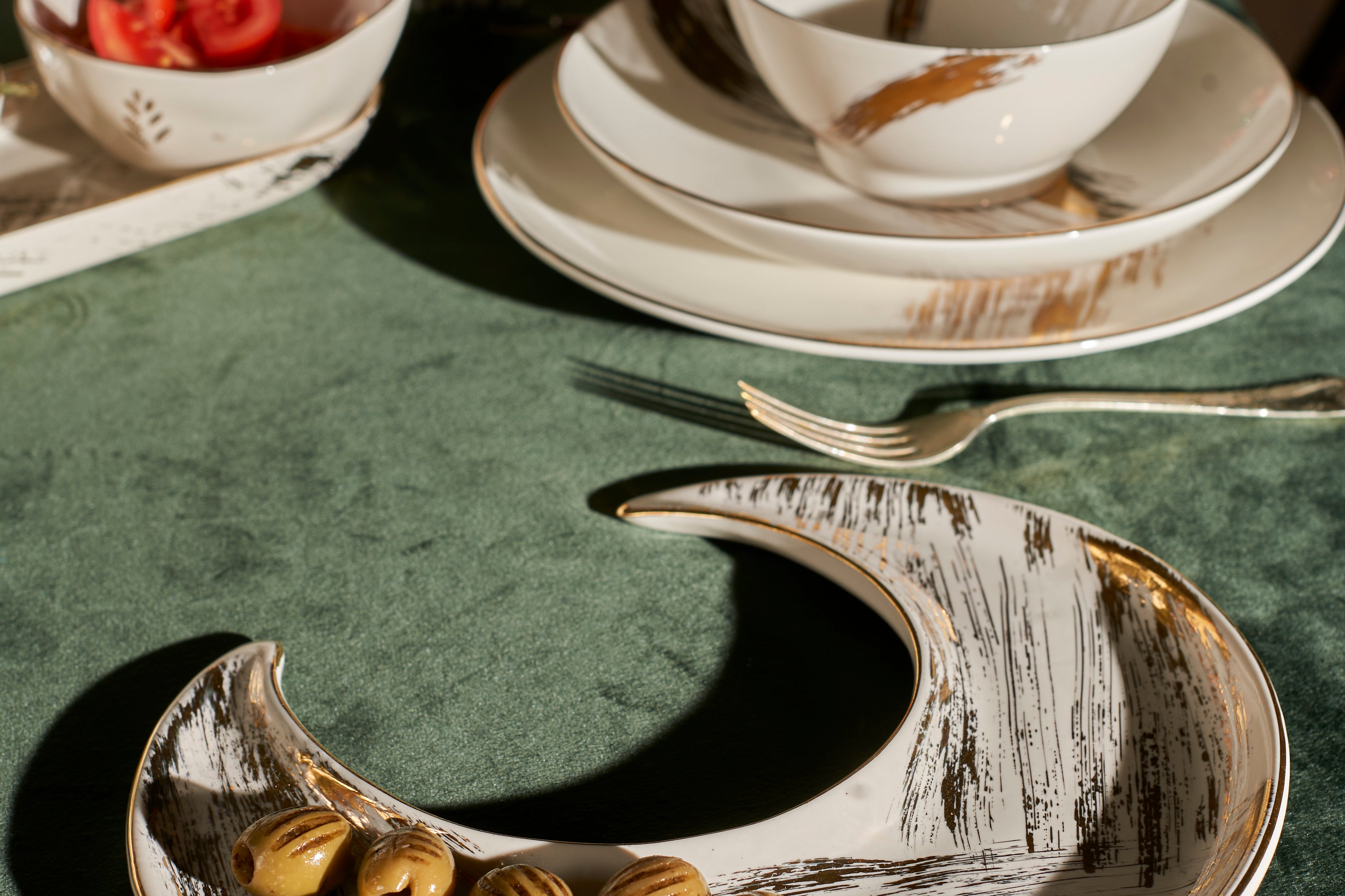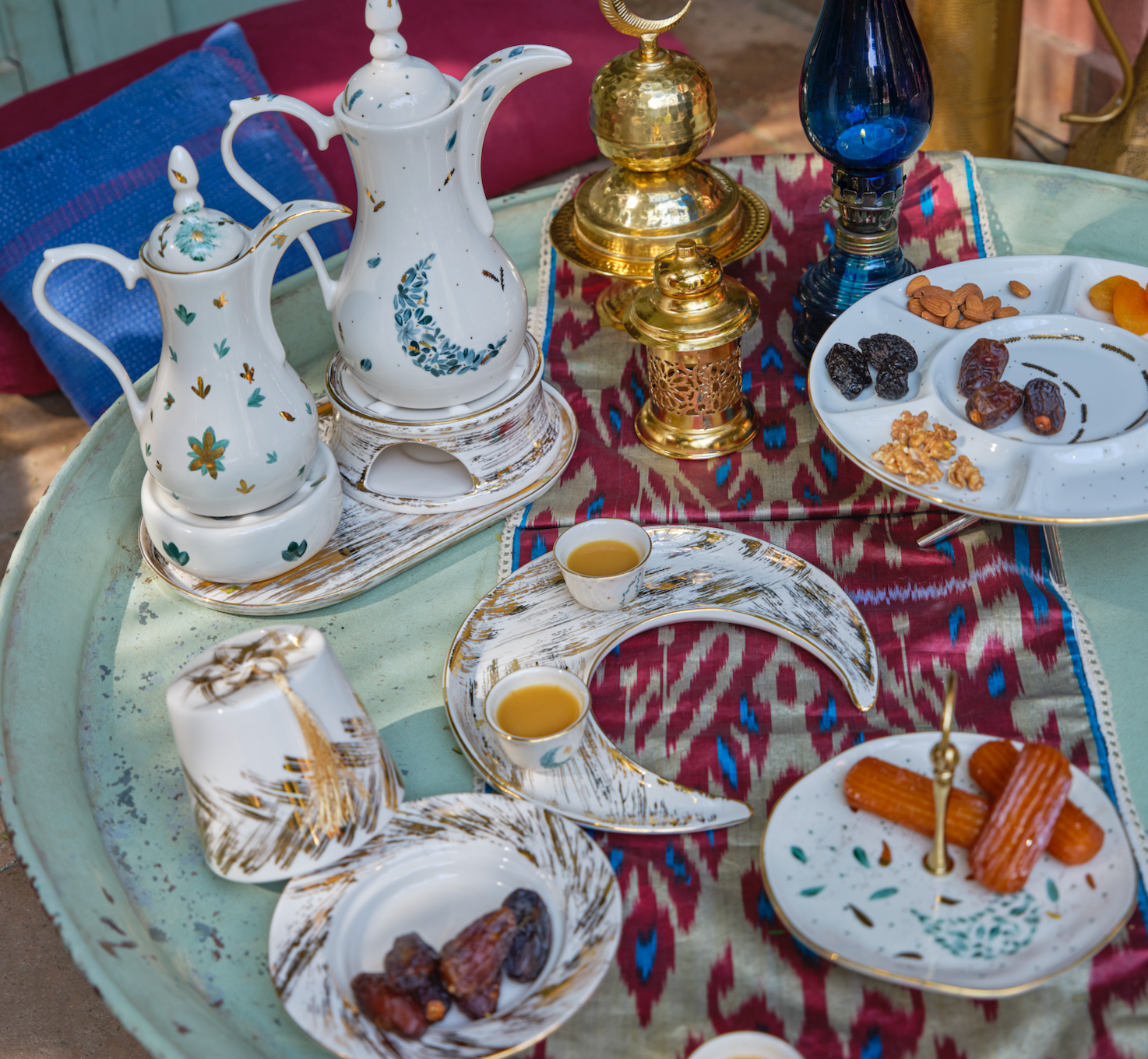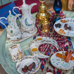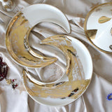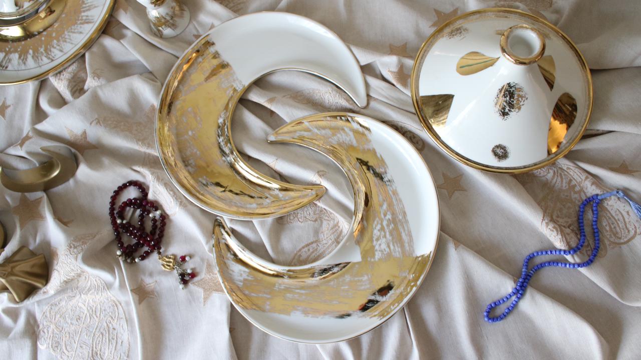 Just a hint of sparkle during this magical month, made for the smallest gatherings or the biggest bashes. We love to fill our crescents with tamr, alongside to our Aurum Arabic coffee cup set and Qahwa dallah. It also works as the perfect Arabic coffee cup tray. This is pure gold hand painted on porcelain.