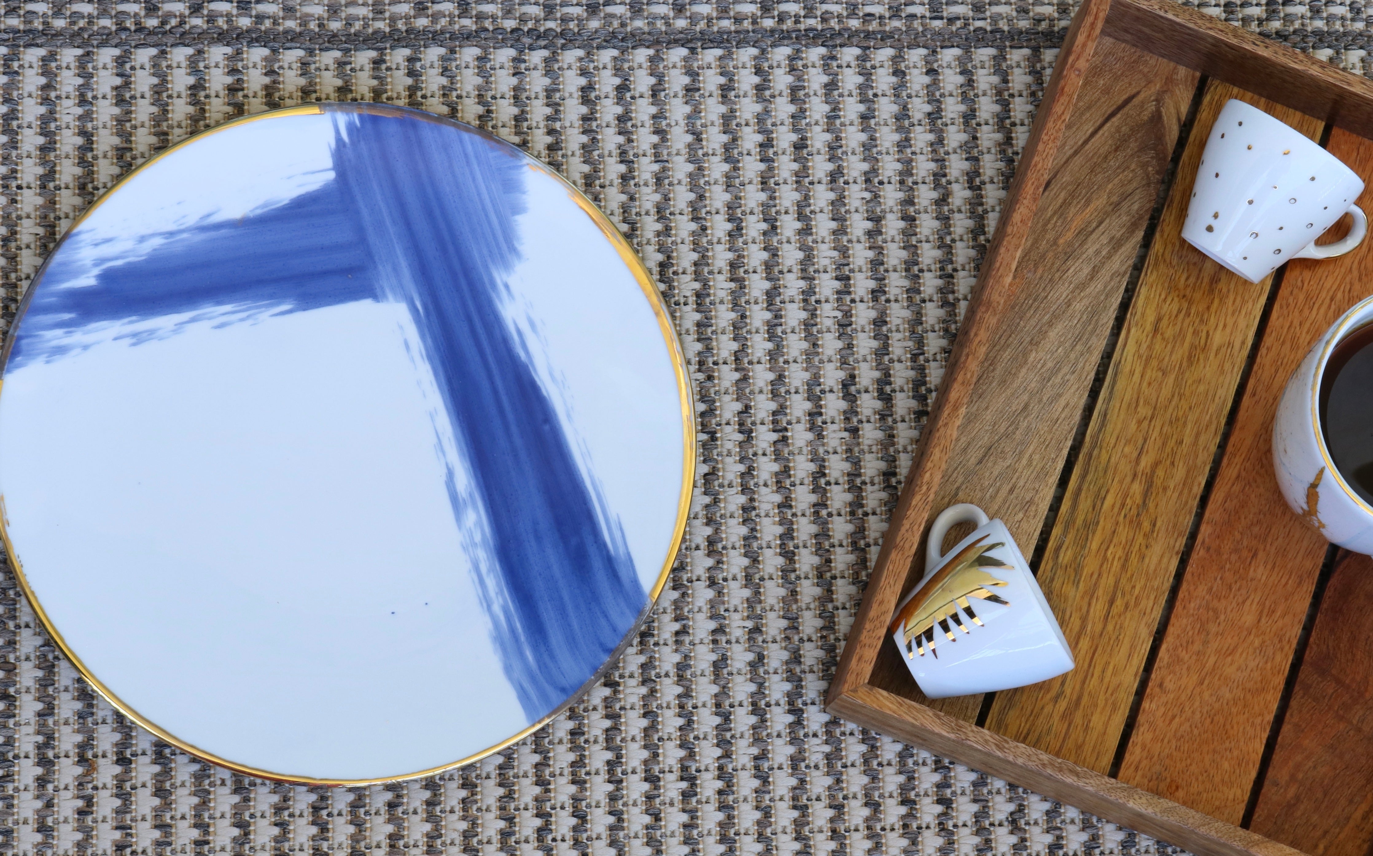 A timeless classic; a best seller that elevates everyday meals and get togethers alike. This is pure gold hand painted on porcelain.