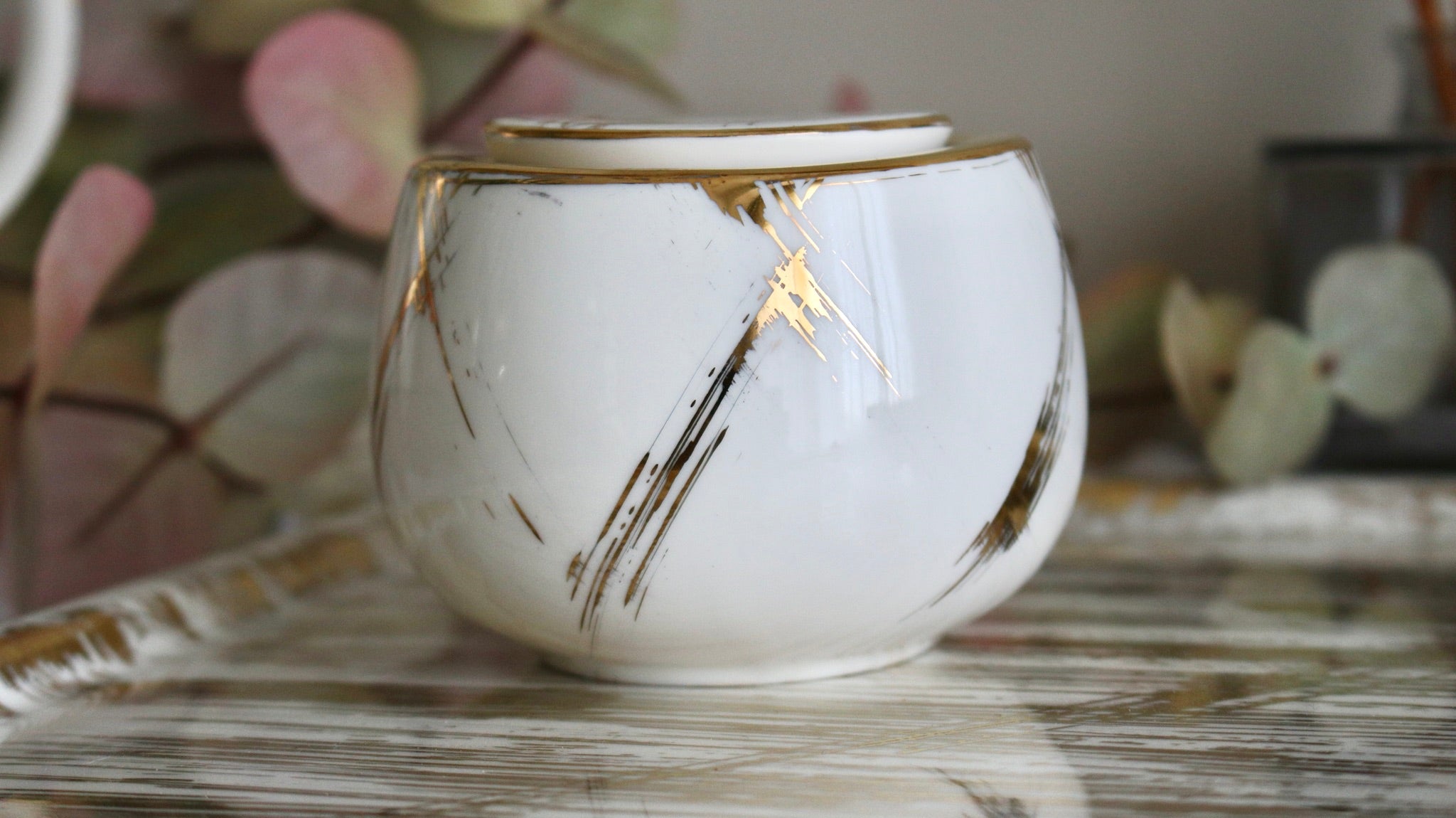 The perfect little sugar bowl for teatime. This is pure gold hand painted on porcelain.