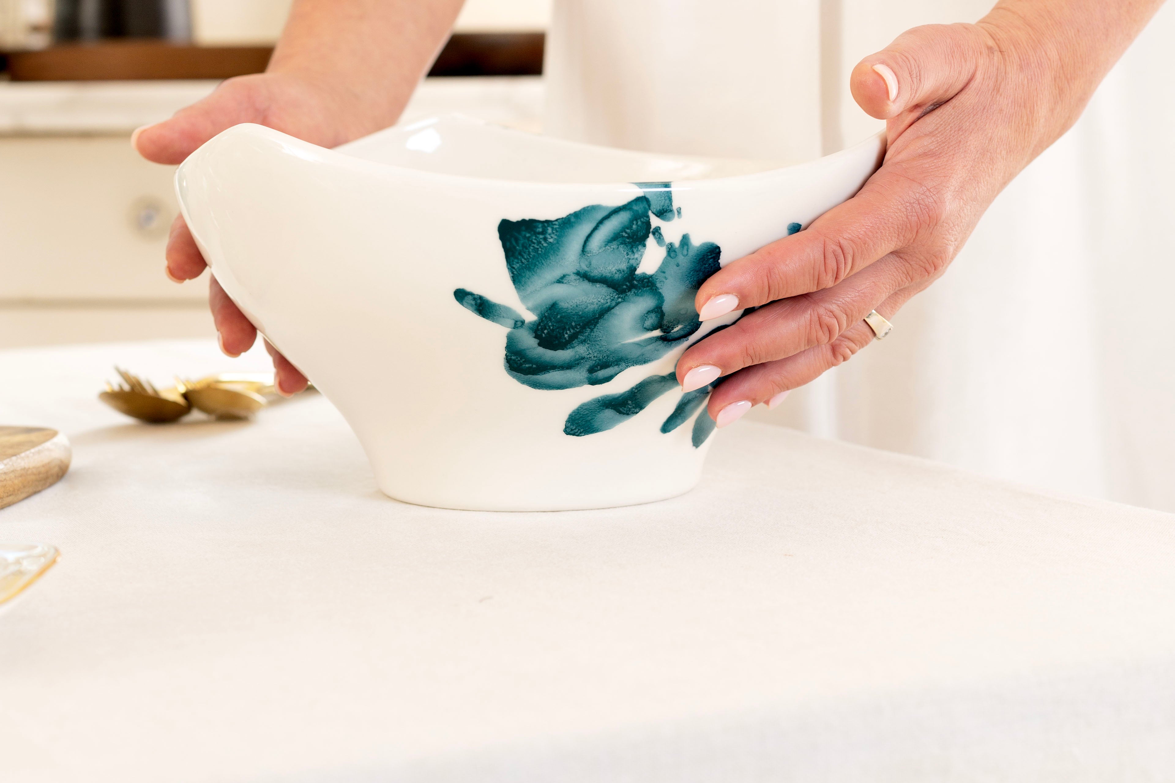 This is hand pained porcelain. The Quartz bowl is microwaveable, dishwasher safe & oven safe.