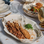 Designed with movement in mind, the Flow Platter brings a sense of ease and quiet artistry to the table. Crafted from fine porcelain, its elongated form and fluid detailing create a natural stage for everything from shared starters to delicate pastries.