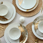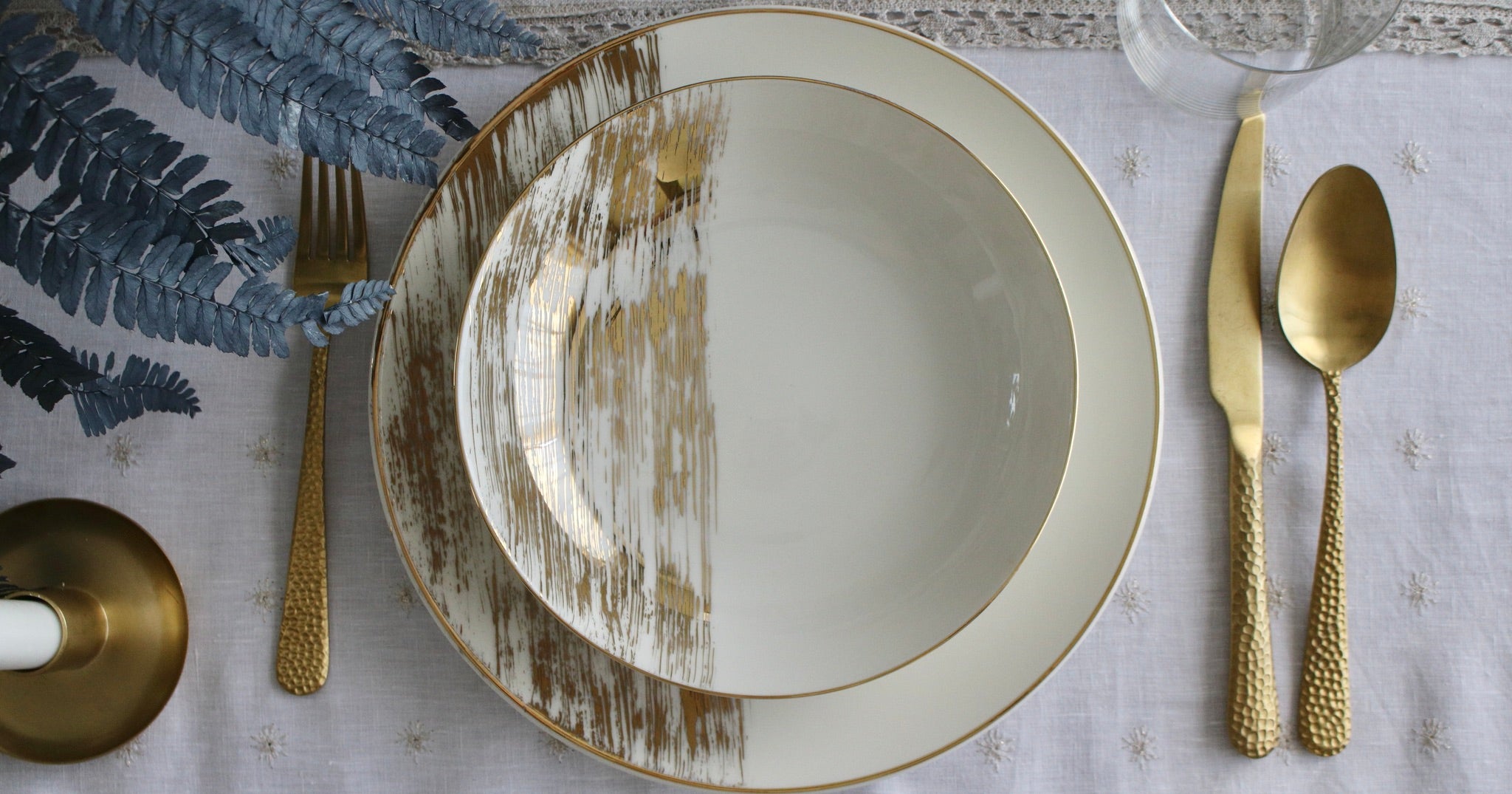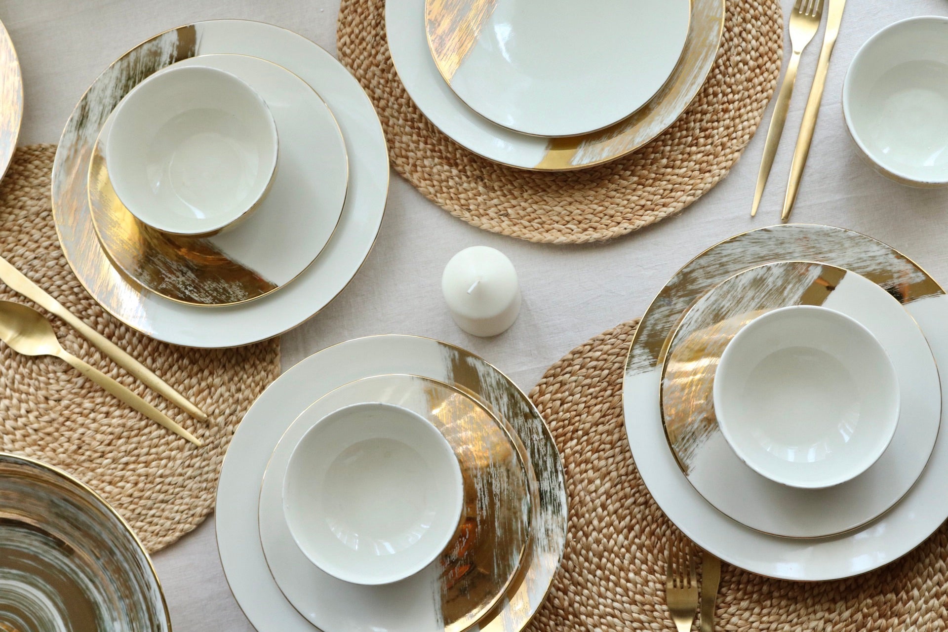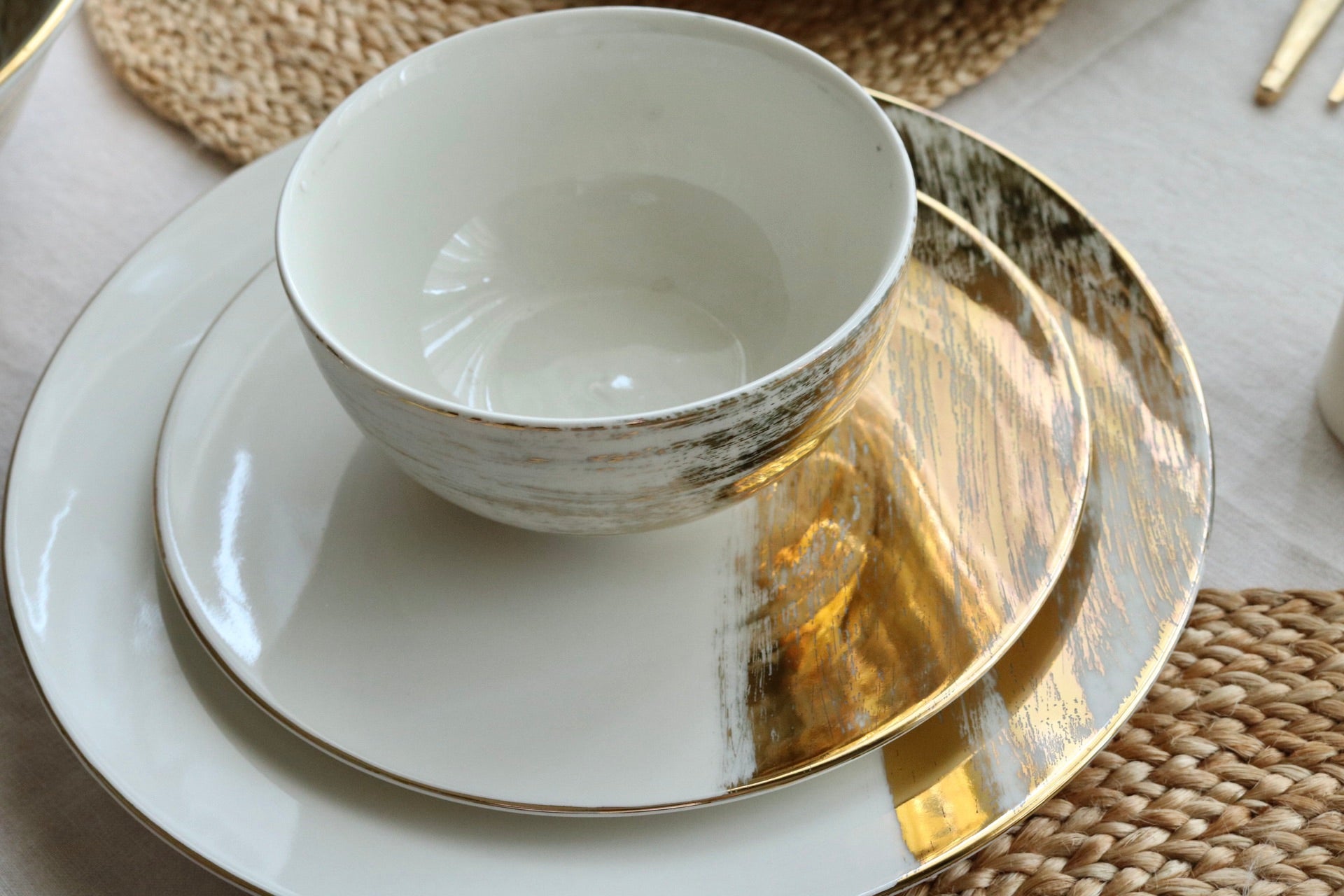 Our timeless Half Brush Aurum set, for those who love the best of worlds! This is pure gold hand painted on porcelain.