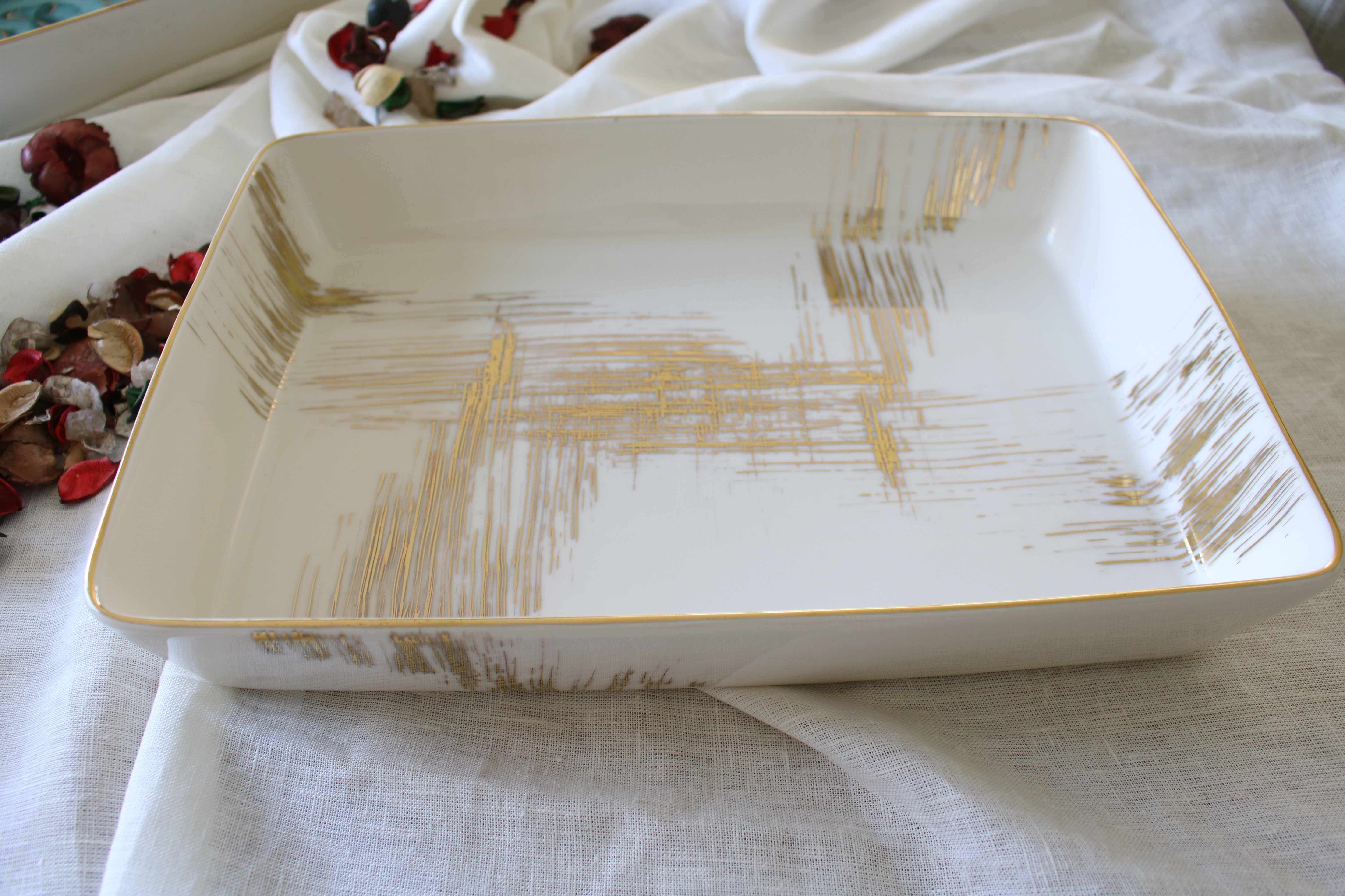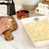 The Janina rectangular baking dish will elevate any cooking experience, from baked pasta to potato gratin to baklava. One of the most versatile pieces in our product catalogue, it is 36 centimeters long, with a width of 27 centimeters.