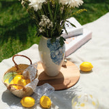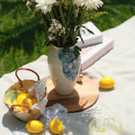 This hand-painted porcelain vase features delicate trailing vines in soft, natural tones. Whether holding a few fresh stems or standing on its own, it brings a quiet, organic beauty to any space. Each piece is one of a kind, made with care and subtle detail.
