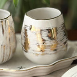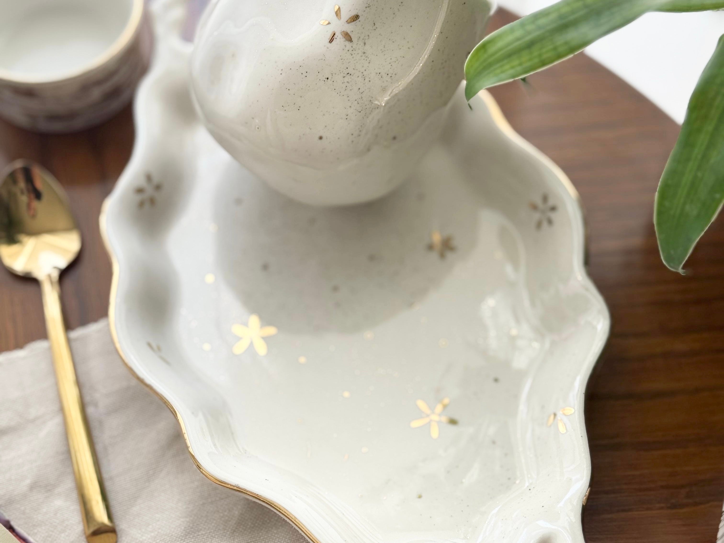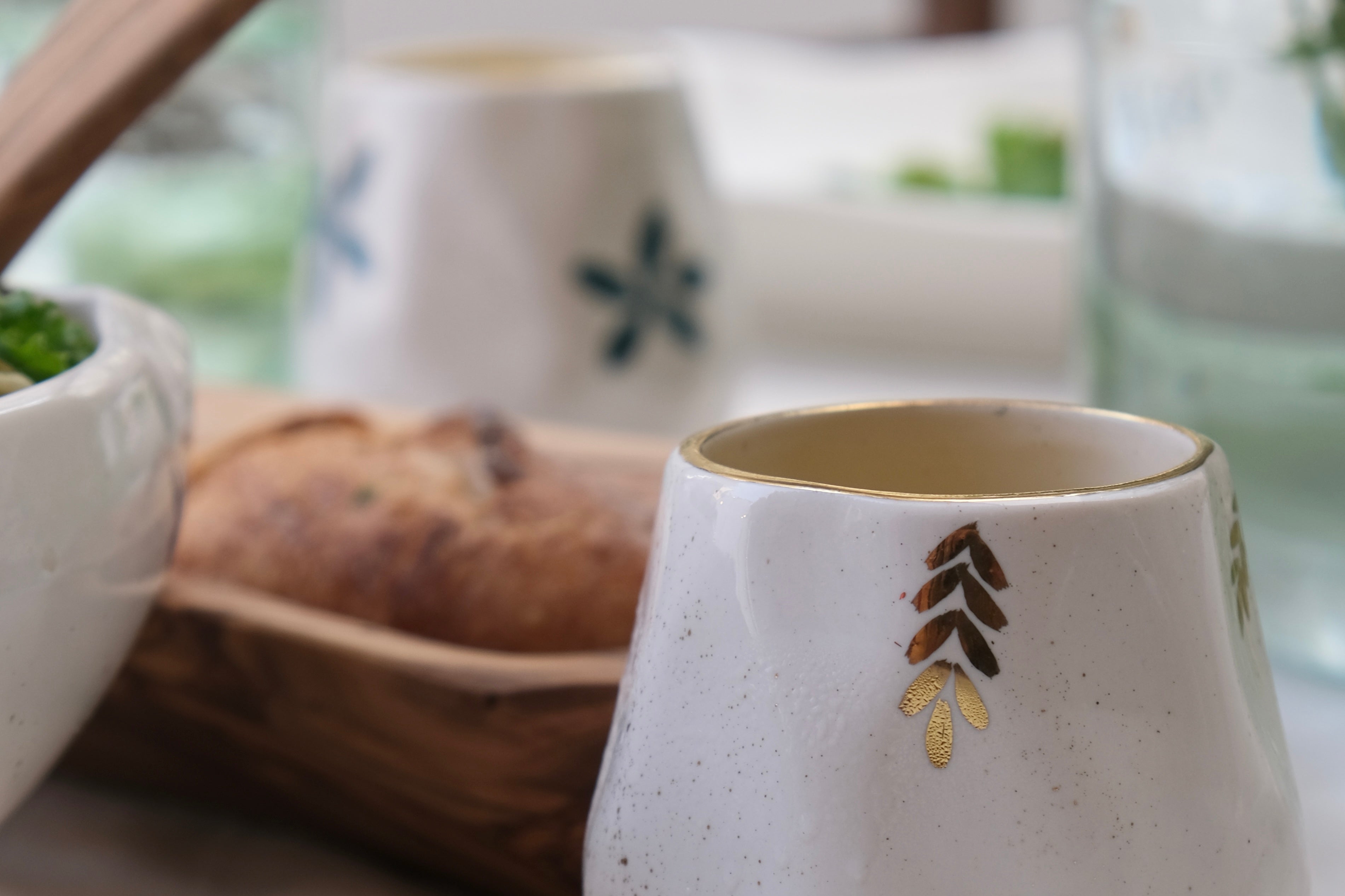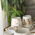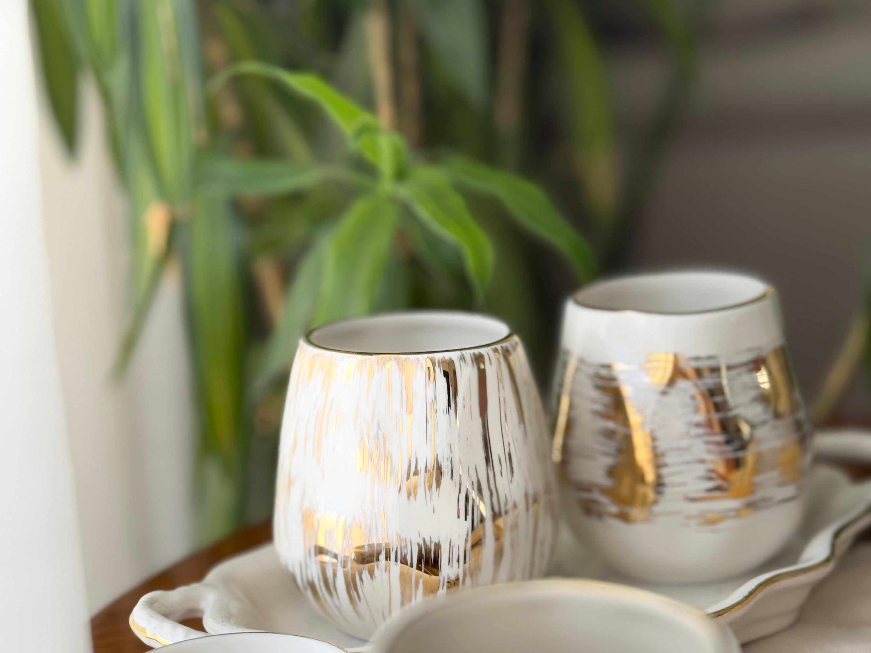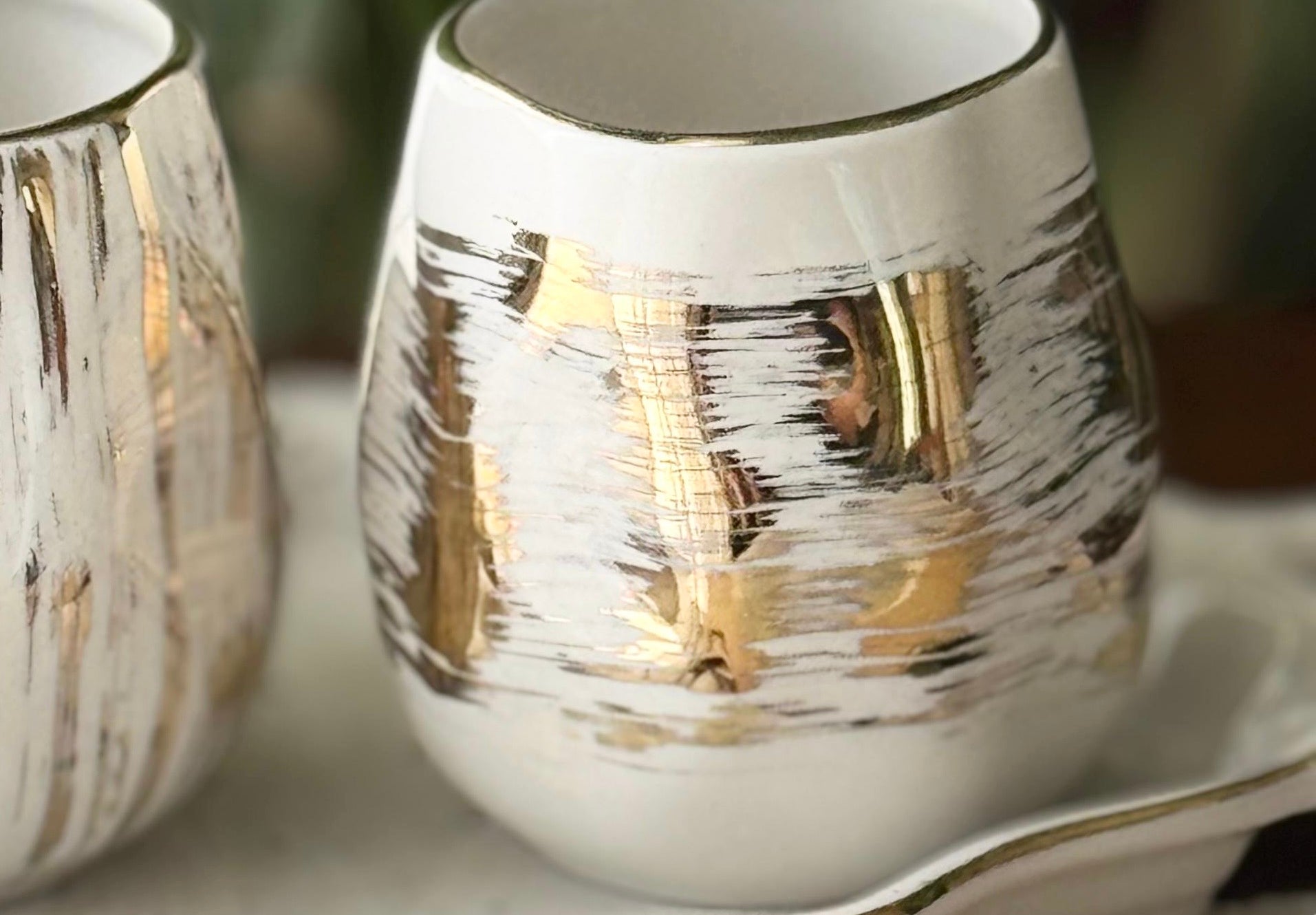 A treasure for the table. Gilded by hand with strokes of pure gold, this porcelain mug brings an air of quiet luxury to your daily ritual. The design shimmers softly in the light, catching the eye with its effortless elegance. Whether gifted or kept, it’s a piece that turns the ordinary into something luminous. Each mug is sold separately.