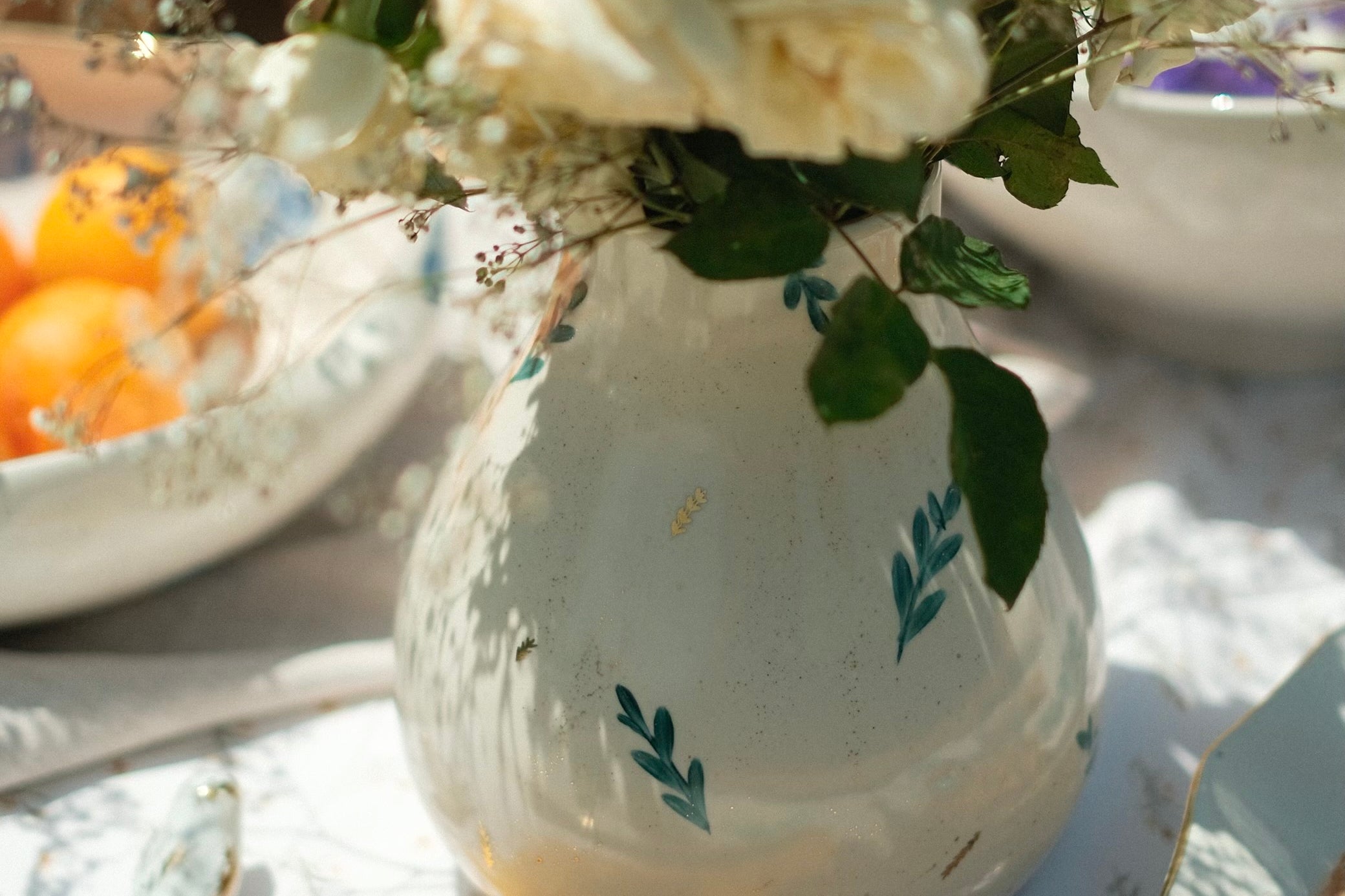 This hand-painted porcelain vase features delicate trailing vines in soft, natural tones. Whether holding a few fresh stems or standing on its own, it brings a quiet, organic beauty to any space. Each piece is one of a kind, made with care and subtle detail.