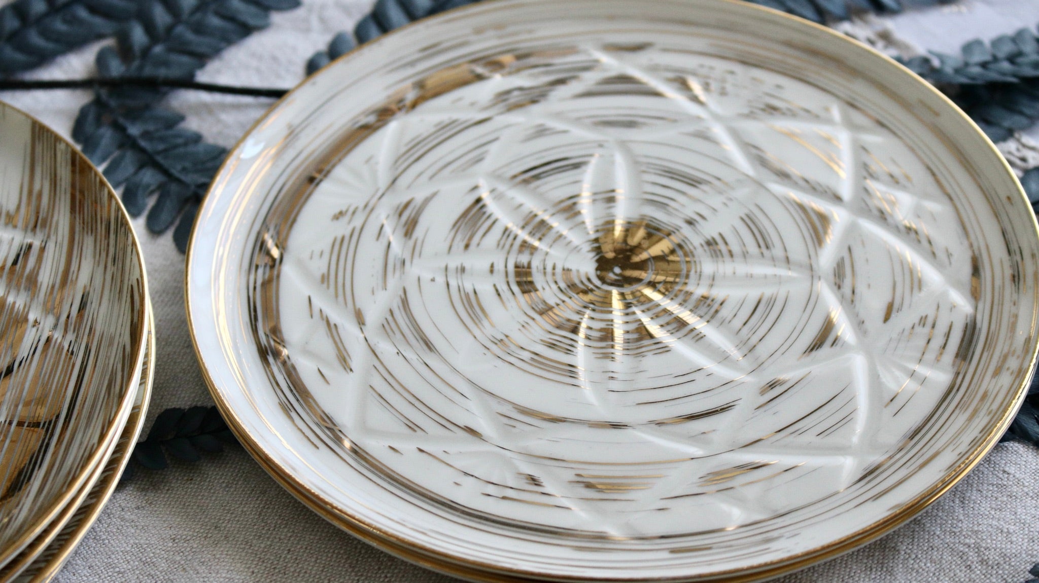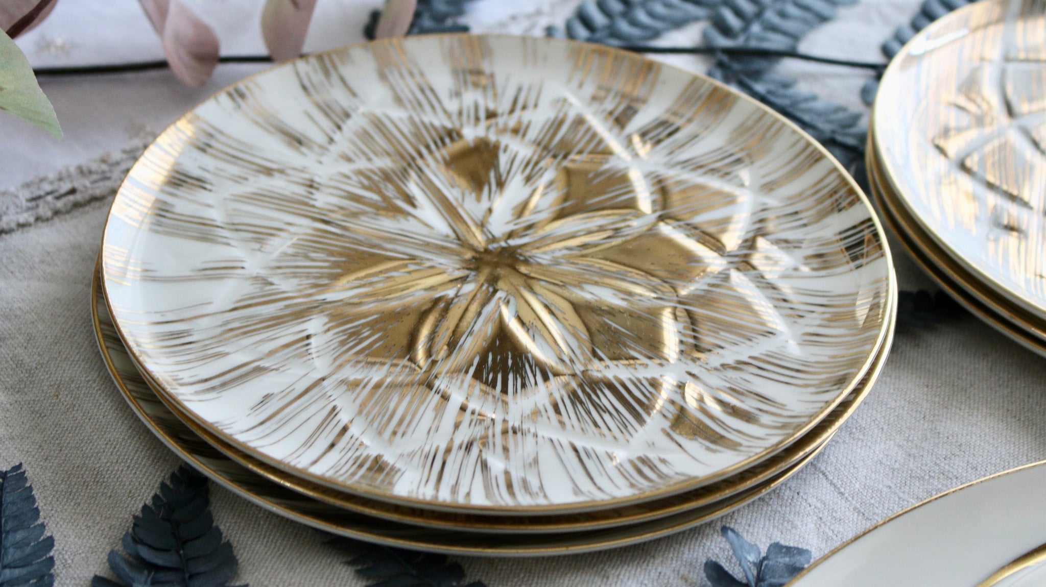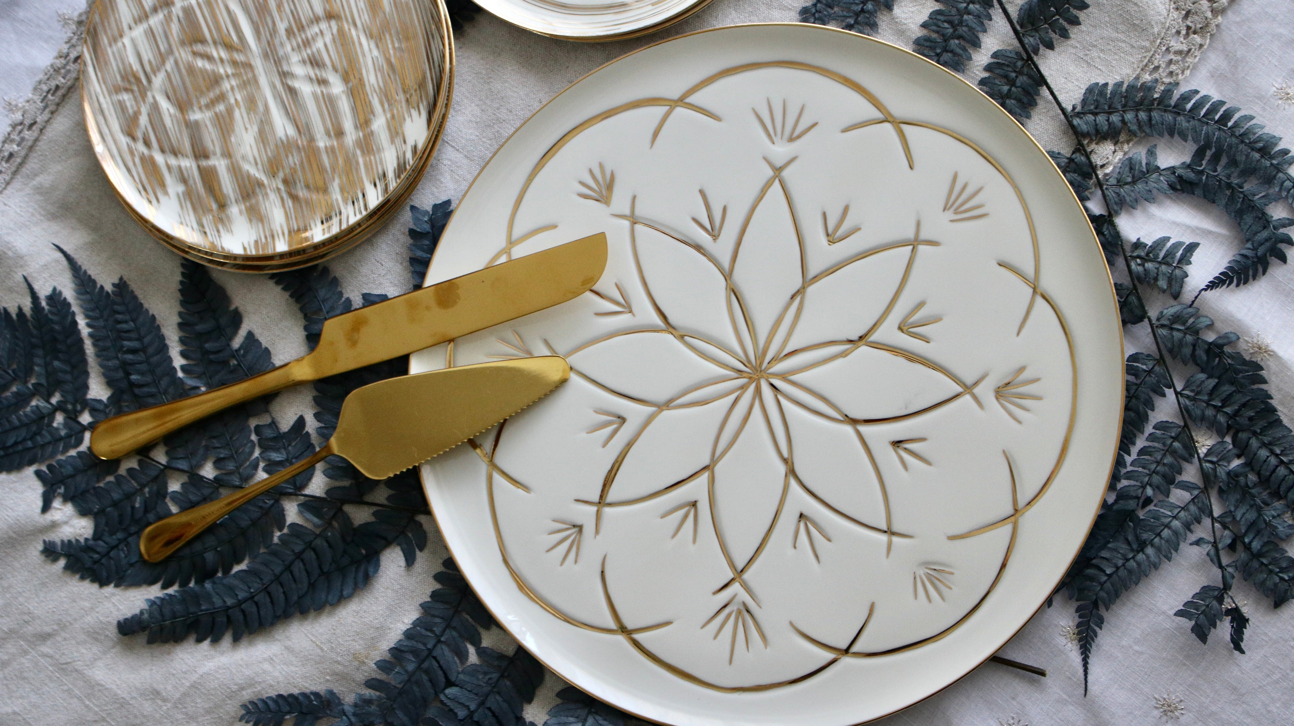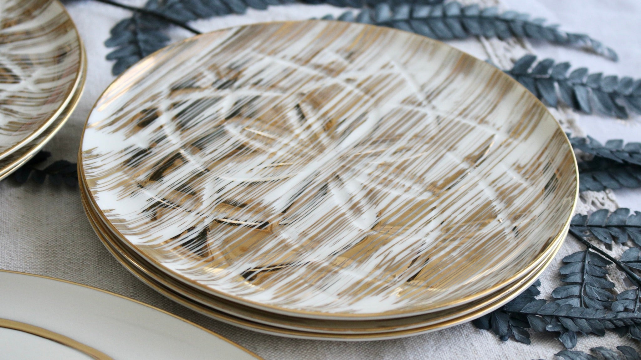 Have your cake, and eat it too! With a side of Aurum, that is. This is pure gold hand painted on porcelain. Since this is hand painted porcelain, no two pieces are identical.